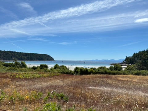 After an hour early morning cruise over to Deep Bay to fill up our water tanks, we re-set the hook at Hornby Island to enjoy a full day on land. A LAND DAY! Land HO! Our time at Hornby passed quickly — we enjoyed a good long walk, lunch in town, and some time on the beach. Frank did his second tour up the mast and after a bit of fussing and tinkering, he FIXED IT! Huzzah! The main halyard had in fact skipped off the top block (sheave) and that obviously caused a ton of friction when we went to raise and lower the main sail. MASSIVE sigh of relief to have this problem solved and not have to pull our entire mast down to troubleshoot a larger problem.